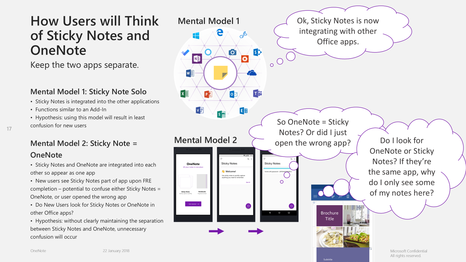 This is an example slide from my presentation on a usability study of the way the OneNote team wanted to present the Sticky Notes and OneNote applications in the app stores.