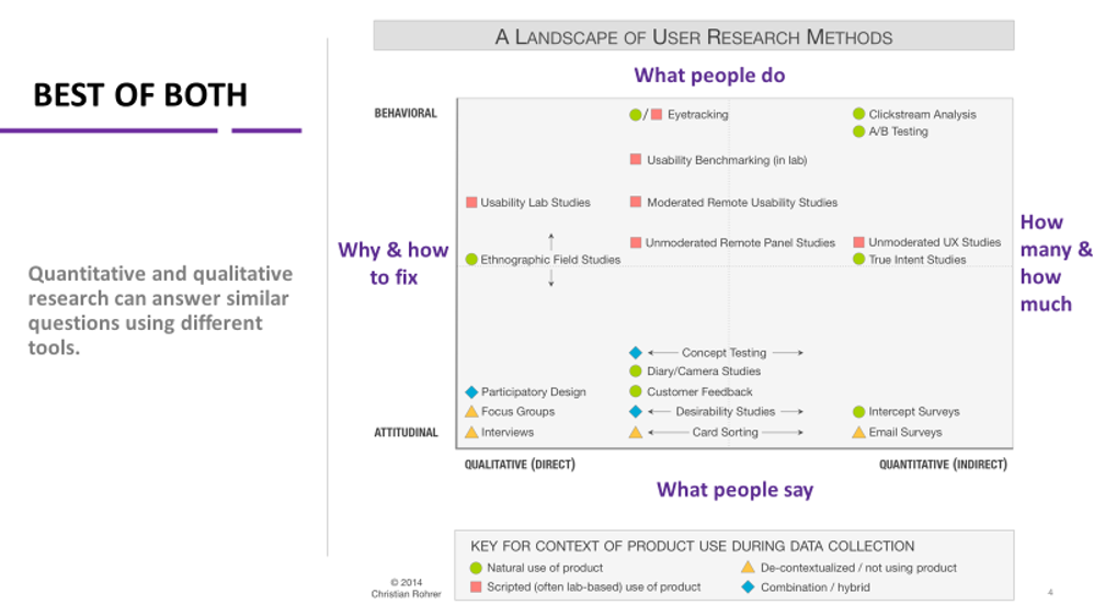 Qualitative and quantitative research naturally fuel each other. For most research studies, it’s best to include both methods to get the answers you need.